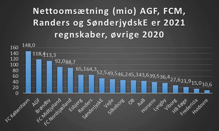 Da klubben ikke oplyser hverken nettoomsætningen eller totalomsætningen i deres regnskab, er dette derfor et estimat, ud fra de oplysninger der tilgængelige i regnskabet
