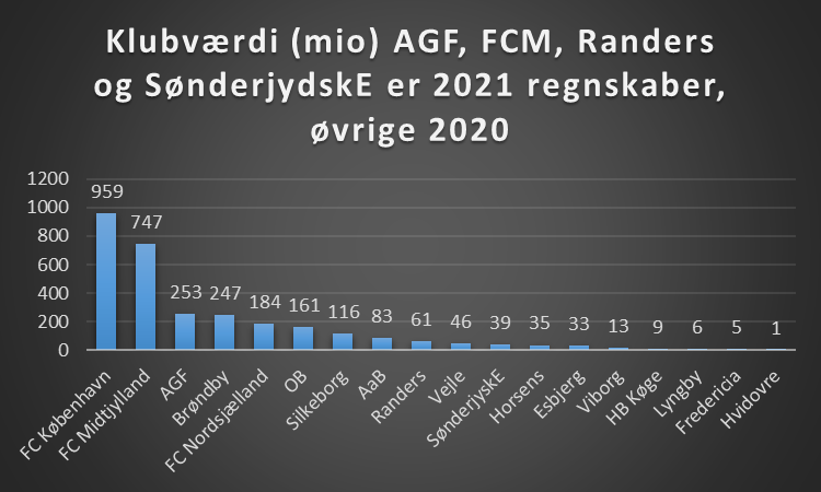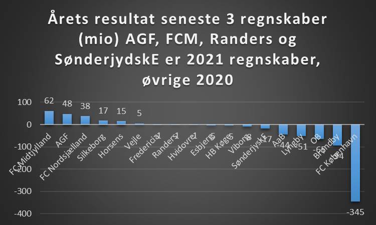 Der skal gøres opmærksom på at ikke alle klubber har afleveret deres regnskab for 2021, så sammenligning giver nogle usikkerheder på den måde.