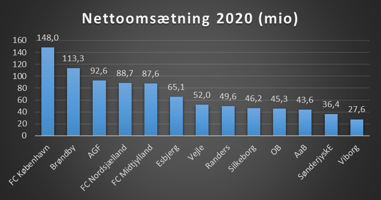 Nedenstående oversigt viser klubbernes samlede nettoomsætning, det vil sige transfer er ikke medtaget her!