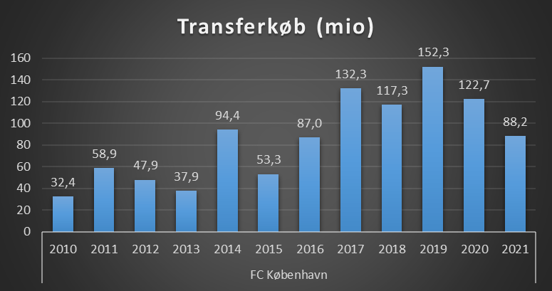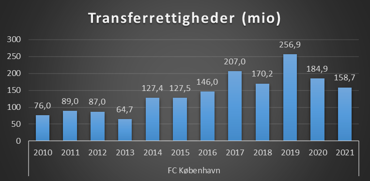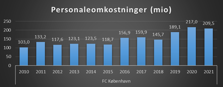 Samlet set over perioden har FC København ikke overskud på denne post.