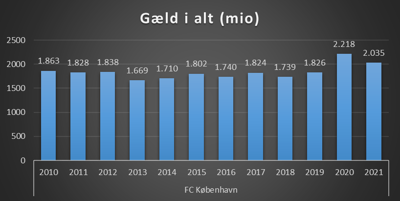 FC Købehavn har den største gæld, men det som er interessant at se på, er i forhold til klubbens aktiver (værdier). Hvis gælden overstiger aktiverne kan det være en udfordring.