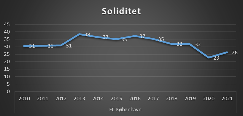En soliditetgrad på 0 er også sjældent godt, da klubben har finansieret alle sine aktiver med fremmed kapital. Det gør gør klubben meget skrøbelig overfor økonomisk modgang, da der ikke skal meget til, før de ikke kan betale sine økonomiske forpligtelser.
