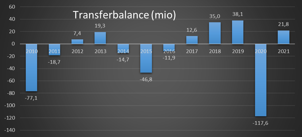 Der skal gøres opmærksom på at ikke alle klubber har afleveret deres regnskab for 2021, så sammenligning giver nogle usikkerheder på den måde.