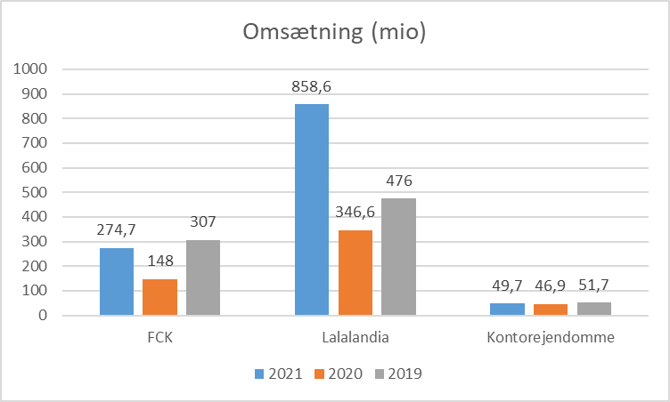 Der er stadig underskud på fodbolddriften, men til gengæld er der markant overskud på de to andre segmenter. Samlet set er regnskabet lidt mere end 400 mio bedre i 2021!