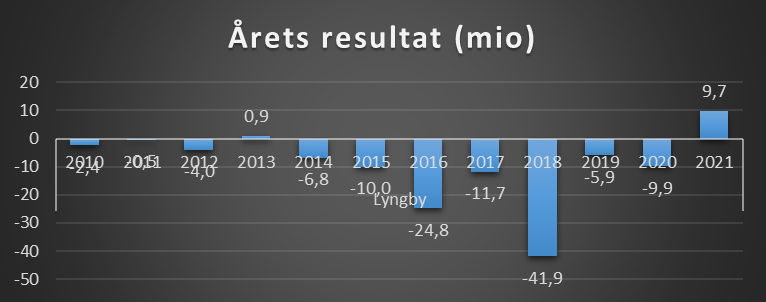 Lyngby har været klubben med underskud på underskud, og siden 2008 har der været et overskud nemlig i 2013 da klubben havde 928.000 i overskud, så et overskud på 9,7 mio er ret historisk.