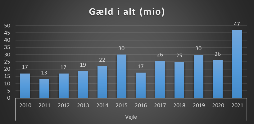 | Rød | Gælden er steget 20 mio til 46,7 mio |