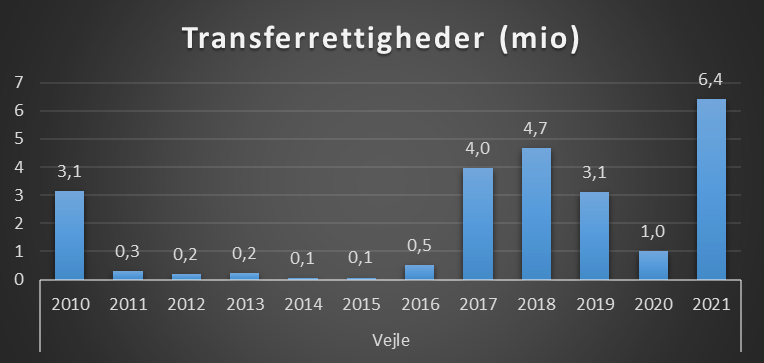 Der er ikke information omkring transfers, hvilket klubben er i sin gode ret til. Skulle Vejle rykke ned vil det nok koste 15-20 mio for klubben.