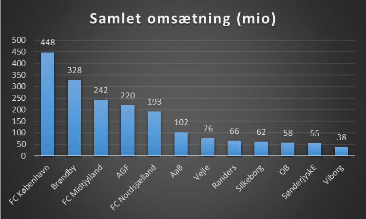 Note: Der er nogle usikkerheder i sammenligningen på tværs af regnskaber, i det nogle regnskaber løber fra sommer til sommer og andre følger kalenderåret. Dermed vil de regnskaber der følger kalenderåret have et regnskab med 9 måneder, mens de klubber der har et regnskab der går fra sommer til sommer har 3 måneder med corona.