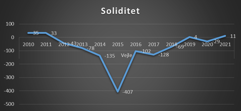 En soliditetgrad på 0 er også sjældent godt, da klubben har finansieret alle sine aktiver med fremmed kapital. Det gør gør klubben meget skrøbelig overfor økonomisk modgang, da der ikke skal meget til, før de ikke kan betale sine økonomiske forpligtelser.