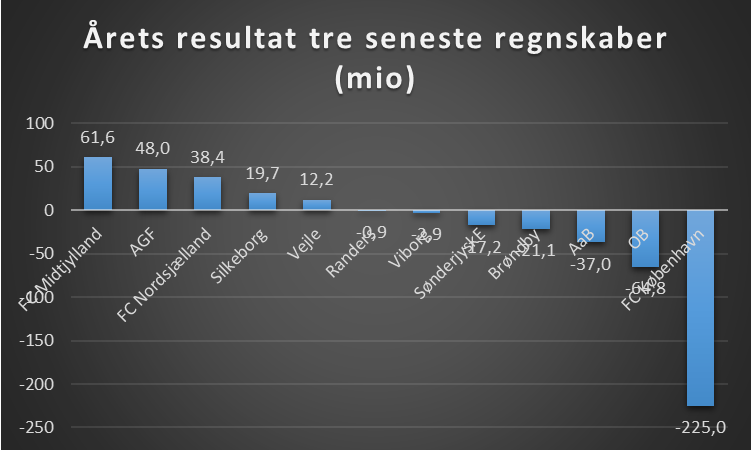 Note: Der er nogle usikkerheder i sammenligningen på tværs af regnskaber, i det nogle regnskaber løber fra sommer til sommer og andre følger kalenderåret. Dermed vil de regnskaber der følger kalenderåret have et regnskab med 9 måneder, mens de klubber der har et regnskab der går fra sommer til sommer har 3 måneder med corona.