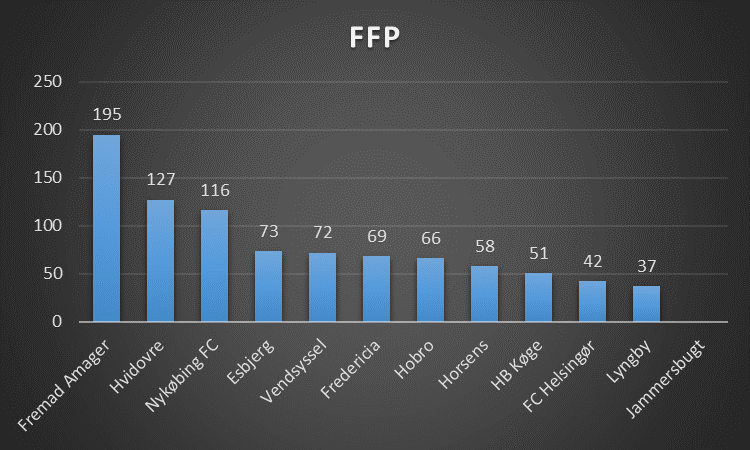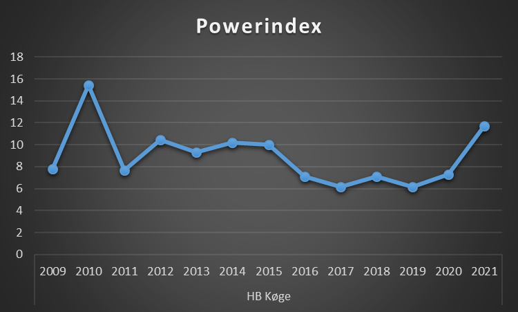 Dette afspejler klubbens niveau, i forhold til den klub der har den største post med personaleomkotninger. Ligger en klub på 50, betyder det at den har 50% af klubben med højeste personaleomkostninger. Over tid viser det om klubben følger med udviklingen blandt toppen af dansk fodbold, eller om afstanden bliver større.