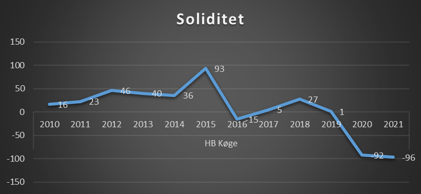 En soliditetgrad på 0 er også sjældent godt, da klubben har finansieret alle sine aktiver med fremmed kapital. Det gør gør klubben meget skrøbelig overfor økonomisk modgang, da der ikke skal meget til, før de ikke kan betale sine økonomiske forpligtelser.