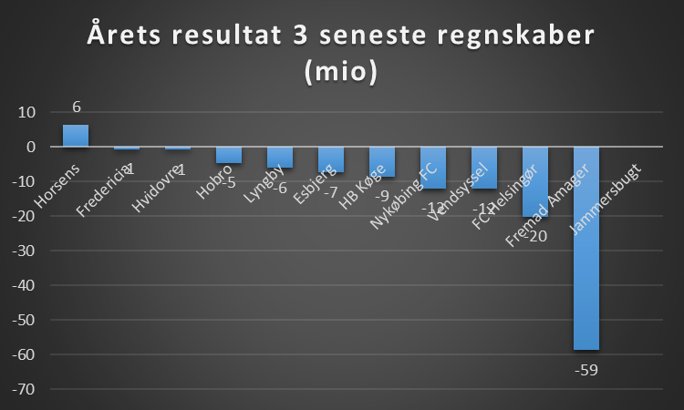 Note: Der er nogle usikkerheder i sammenligningen på tværs af regnskaber, i det nogle regnskaber løber fra sommer til sommer og andre følger kalenderåret. Dermed vil de regnskaber der følger kalenderåret have et regnskab med 9 måneder, mens de klubber der har et regnskab der går fra sommer til sommer har 3 måneder med corona.