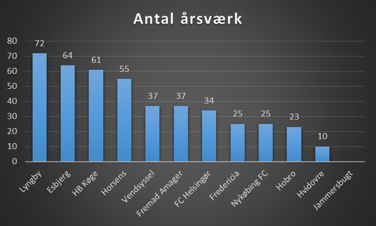 Dette dækker over alle ansatte i klubben og er antal årsværk.