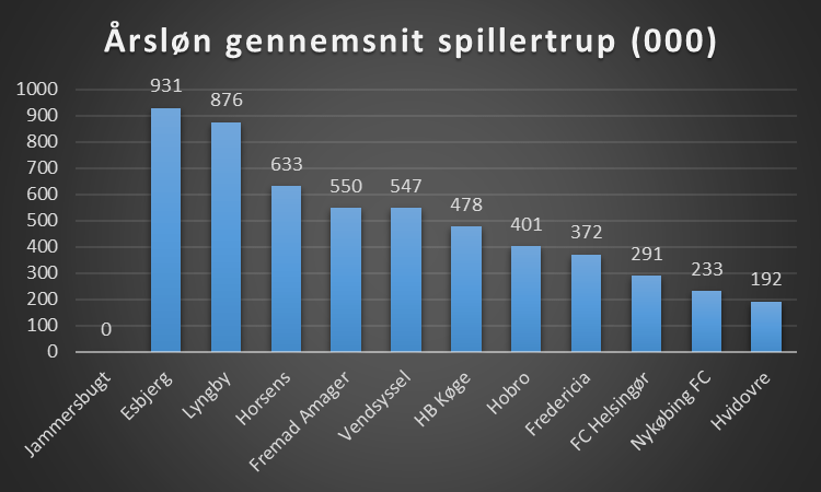 Lønsum til spillertrup og trænerstab kendes ikke, så de tal er et estimat.