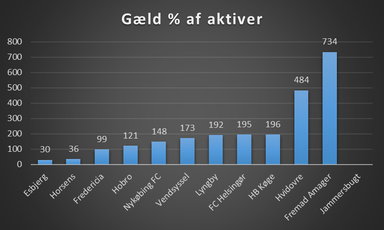 Det som er interessant at se på, er i forhold til klubbens aktiver (værdier). Hvis gælden overstiger aktiverne kan det være en udfordring.