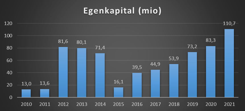 Egenkapitalen udgør den samlede sum, når de to forhold er gjort op med hinanden.