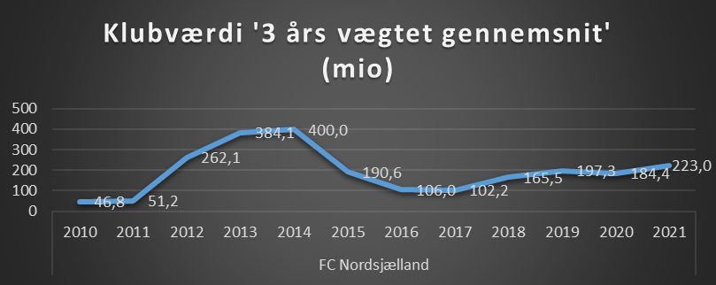 Herunder er estimatet for FC Nordsjælland beregnet til 115 mio, men det er et estimat.
