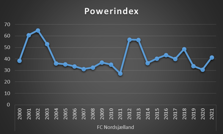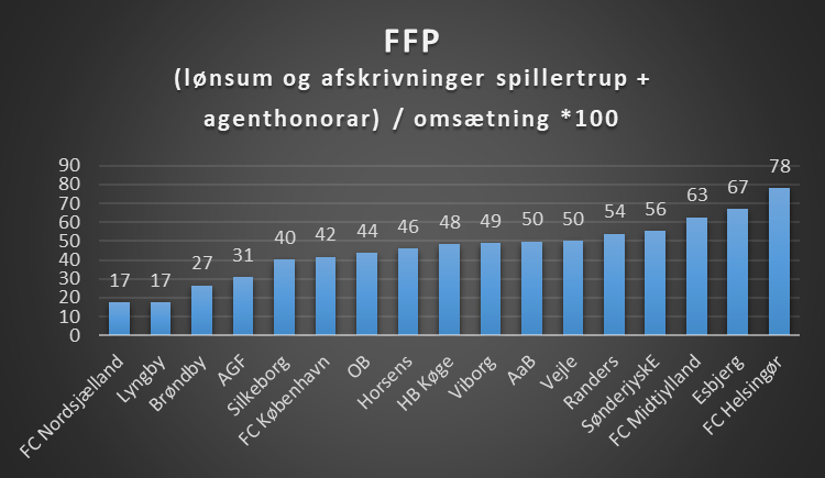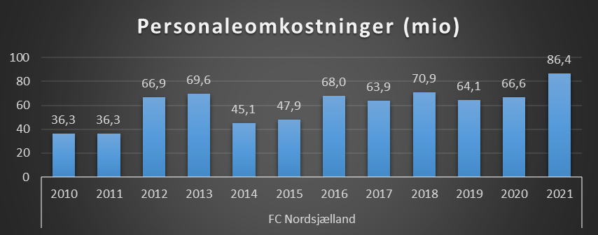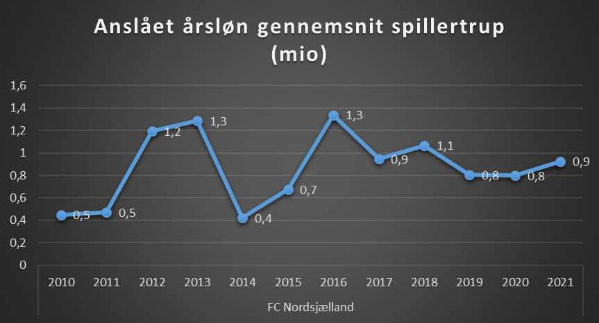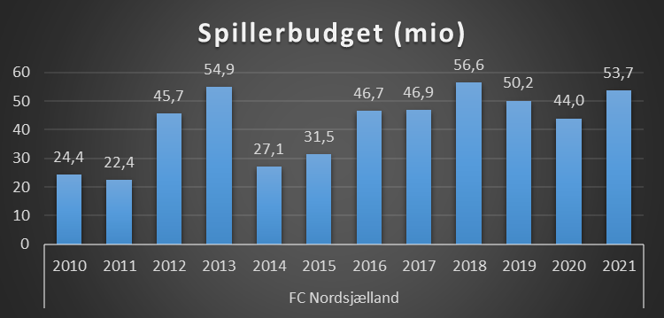 FC Nordsjælland ligger siden 2013 omkring de 40%. Det vil sige de holder deres niveau forholdsmæssigt. Det svarer til at bruger FC København 100kr på løn, så bruger FC Nordsjælland 40kr.