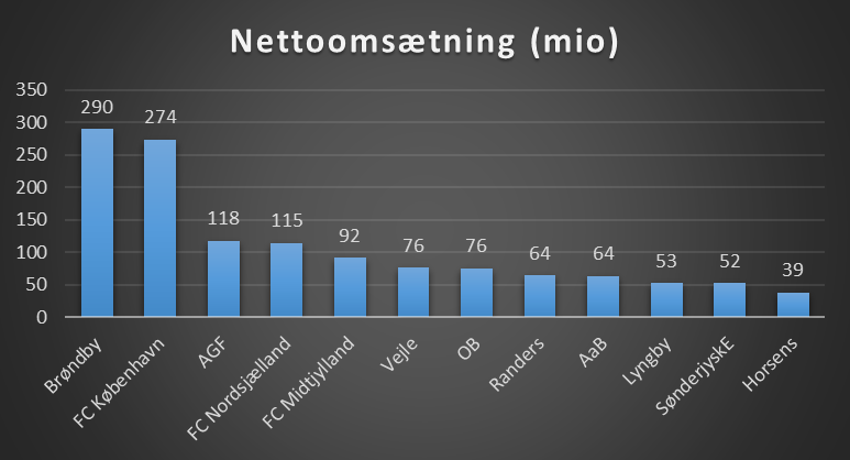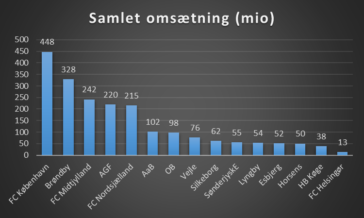 Ses der på klubbernes samlede omsætning, og her er medtaget lidt flere klubber