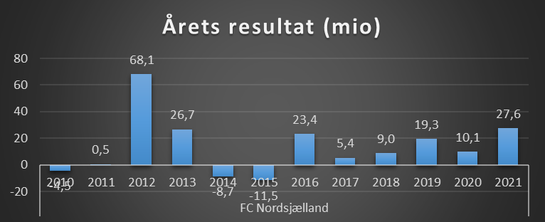Når det så er sagt, så er FC Nordsjælland kommet med et stærkt regnskab, de seneste 6 regnskaber er positive, og med et samlet overskud på 94 mio de seks regnskaber.