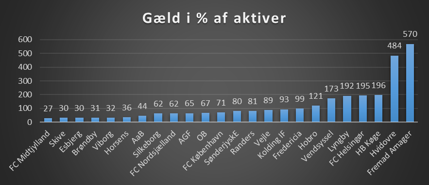 FC Købehavn har den største gæld, men det som er interessant at se på, er i forhold til klubbens aktiver (værdier). Hvis gælden overstiger aktiverne kan det være en udfordring.
