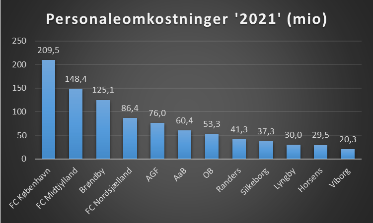 Det bliver tæt mellem FC Midtjylland og Brøndby, og for begge klubber gælder at deres personaleomkostninger vil være lavere i næste regnskab forventeligt. Dette da FC Midtjylland har udbetalt en stor bonus for at komme i gruppespil i Champions League, og Brøndby en bonus for at vinde DM guld. Så realistisk er begge klubber på omkring 100+ mio.