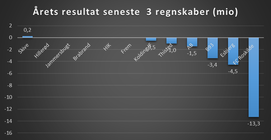 Note: Der er nogle usikkerheder i sammenligningen på tværs af regnskaber, i det nogle regnskaber løber fra sommer til sommer og andre følger kalenderåret. Dermed vil de regnskaber der følger kalenderåret have et regnskab med 9 måneder, mens de klubber der har et regnskab der går fra sommer til sommer har 3 måneder med corona.