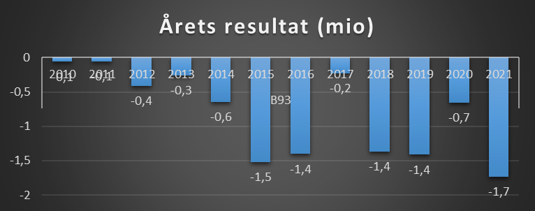 Resultatopgørelsen for tiden 01.01.21 – 31.12.21 udviser et resultat på DKK -1.730.384 mod