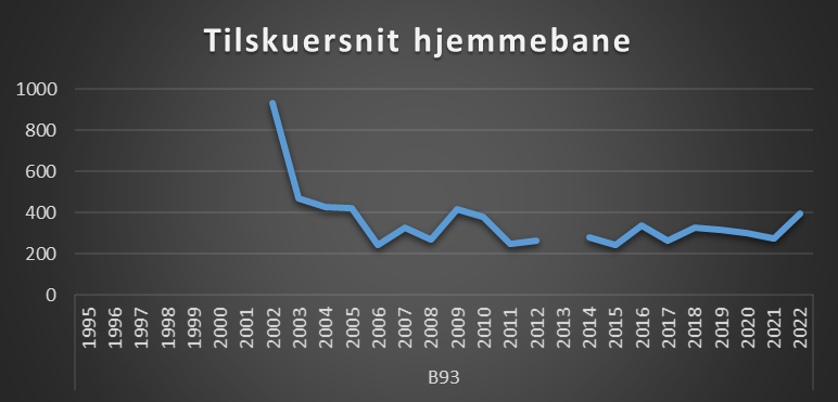 B93 har som tidligere nævnt valgt ikke at oplyse klubbens nettoomsætning, som derfor er et estimat. Klubben er ikke forpligtet til at oplyse dette