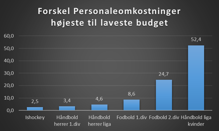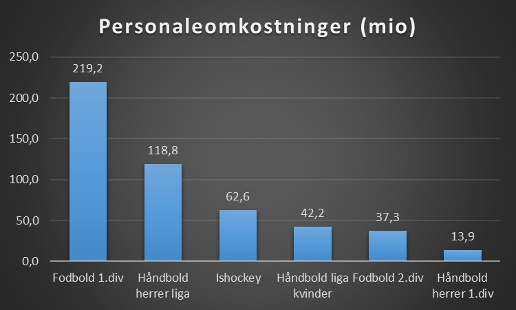 Ses der på personaleomkostninger, så er det samlede tal på ligaerne således for de klubber der er selskaber, hvilket ikke er alle klubber i de respektive ligaer håndbold herrer, håndbold kvinder og håndbold herrer 1.div.