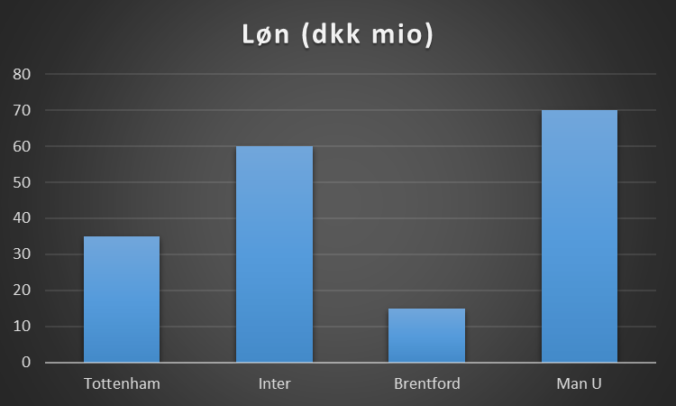 Inden Christian Eriksen kom til Brentford, var han hos italienske Inter, og her var årslønnen på 55-60 mio, men med skiftet til Brentford, ja så måtte Christian Eriksen gå meget ned i løn.