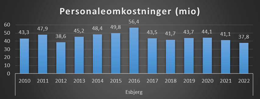 Grafen herunder viser hvordan forholdet er mellem den klub der bruger flest ressourcer på personaleomkostninger og så den klub der er i denne analyse.