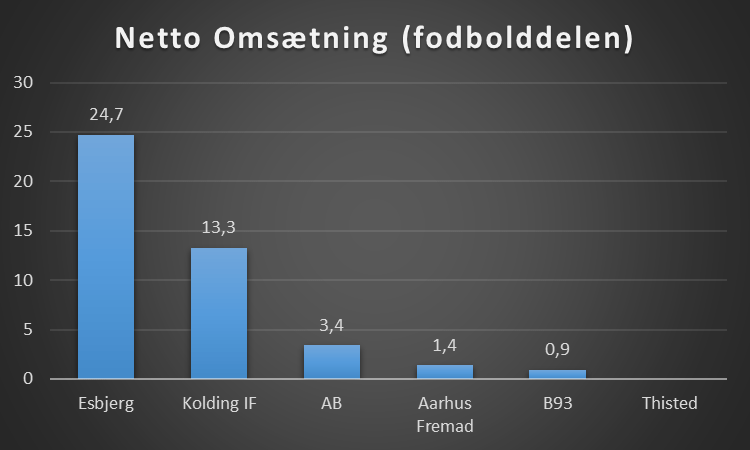 Nettoomsætning er klubbens primære indtægter, Esbjerg oplyser ikke dette i deres regnskab, hvad de er i deres gode ret til og derfor er omsætning et estimat baseret på denne model