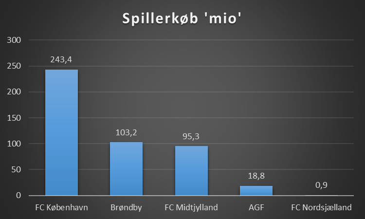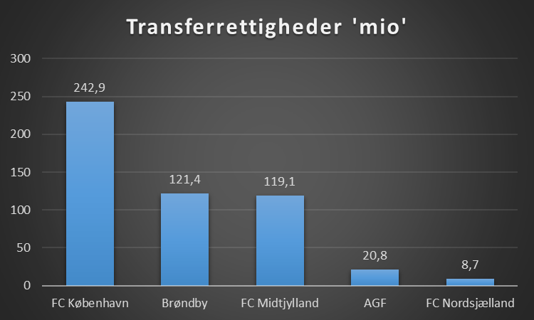 Ses der på hvor mange penge selve truppen er værd (transferettigheder) og hvor mange midler der er brugt på spillerkøb, ser det således ud.
