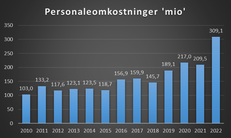 På personaleomkostninger har FC København øget fra 209 mio til 309 mio!