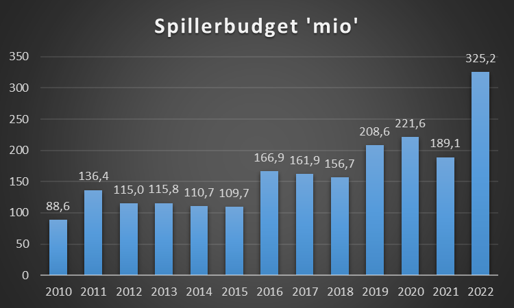 I nedenstående er det et estimat, hvor lønsum trænerstab dog ikke er medtaget, da det ikke er meldt ud hvad det dækker over præcis. Ligeså er lønsum spillertrup et estimat.