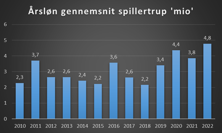 Dette er lønsum spillertrup + afskrivninger spillertrup. Lønsummen for spillertrup er ikke oplyst og er derfor et estimat baseret på de oplysninger der er i regnskab i forhold til antal kontraktansatte mm.