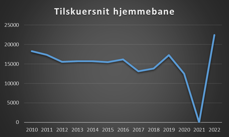 Tallet for 2021 er ikke medtaget (Covid19 sæsonen) og står som 0.