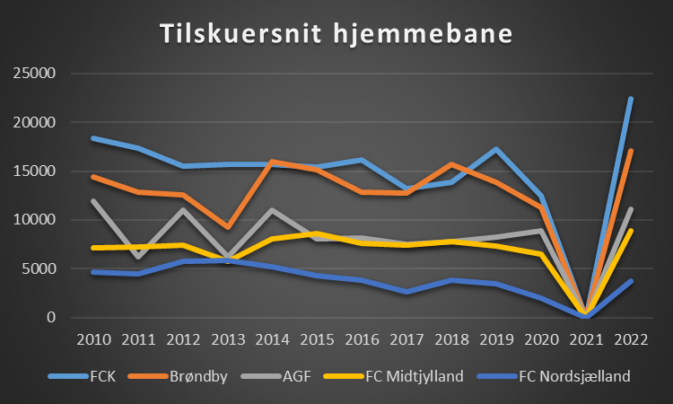 Brøndby, FC København, FC Midtjylland. For FC Nordsjælland gælder at deres regnskab endnu ikke er lagt ud offentligt og derfor er det 2021 regnskab der er medtaget.