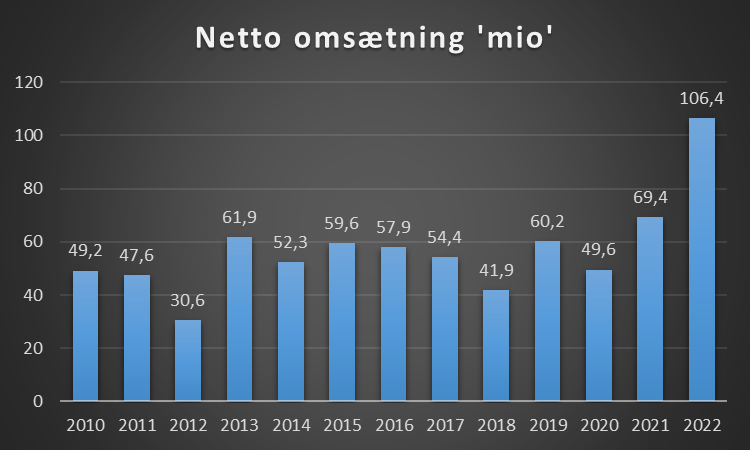 | Grøn | Randers har nok rundet de 100 mio i omsætning Rekord overskud med 28,1 mio Aktiver er steget med 28 mio til 84,7 mio Soliditet er på 47 Gæld i forhold til aktiver er faldet til 53% fra 88% Gælden er faldet med 4,5 mio til 45,2 mio Egenkapital er øget til 39,5 mio fra 11,3 mio |