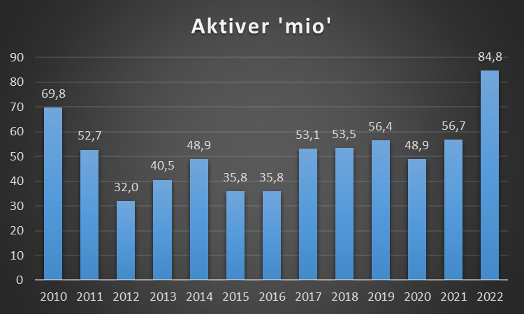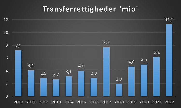 Totalomsætning er inklusiv transfer og andre indtægter. I 2022 har Randers ikke oplyst transferindtægter i regnskabet.