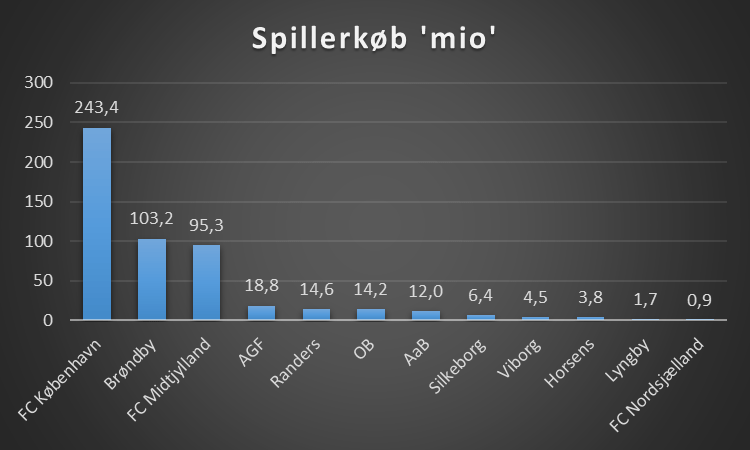 Ses der på hvor mange penge selve truppen er værd (transferettigheder) og hvor mange midler der er brugt på spillerkøb, ser det således ud.