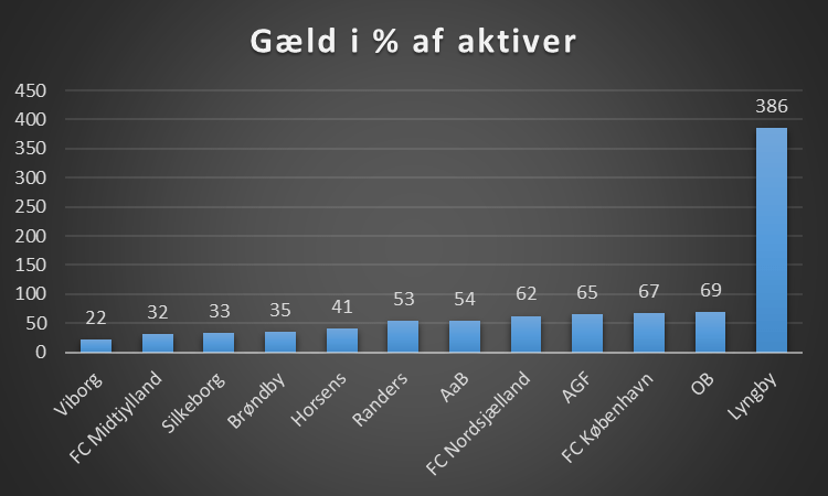 FC København har den største gæld, men det som er interessant at se på, er i forhold til klubbens aktiver (værdier). Hvis gælden overstiger aktiverne kan det være en udfordring.