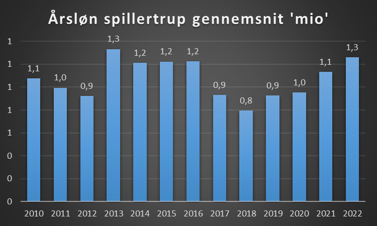 Dette er et estimat med afsæt i de oplysninger der er i regnskabet. Der er nogle tal der kan springe i øjnene, men som læser skal du have opmærksomhed på at der kan være en bonus i forbindelse med kvalifikation til europæisk gruppespil der gør lønne hopper, samt at for nogle klubber er det seneste regnskab fra 1.div.