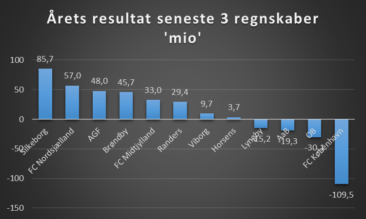 Note: Der er nogle usikkerheder i sammenligningen på tværs af regnskaber, i det nogle regnskaber løber fra sommer til sommer og andre følger kalenderåret. Dermed vil de regnskaber der følger kalenderåret have et regnskab med 9 måneder, mens de klubber der har et regnskab der går fra sommer til sommer har 3 måneder med corona.