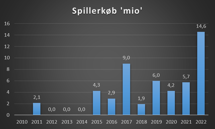 Dette er lønsum spillertrup + afskrivninger spillertrup. Lønsummen for spillertrup er ikke oplyst og er derfor et estimat baseret på de oplysninger der er i regnskab i forhold til antal kontraktansatte mm.