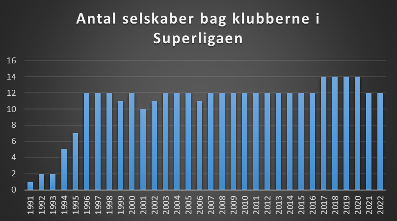 Stille og roligt er foreningsdelen gledet i baggrunden og det er selskaber der er bag klubberne. I oversigten herunder, ses det hvor mange klubber der rent faktisk var selskaber det enkelte år. Der kan mangle klubber i starten, men her har det ikke været muligt at finde regnskaberne fra andre end dem der er nævnt.