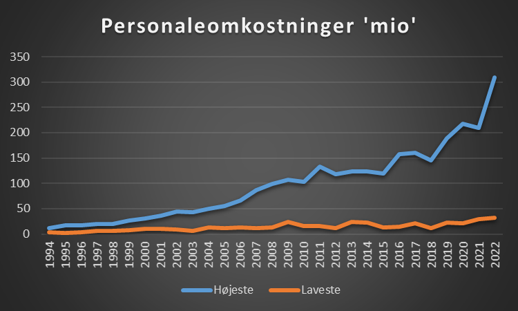 Der er dog markant forskel på hvad den klub der bruger flest midler på denne post og den klub der bruger færrest!