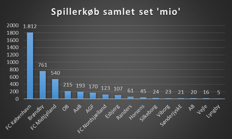 Samlet set i Superligaens historie ser det således ud hvad de enkelte klubber har købt spillere for.